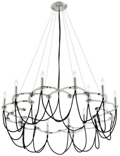 12 Light CHANDELIER, BLACK-Plated glass brackets, Textured fabric wiring sleeves, chrome canopy and hardware.