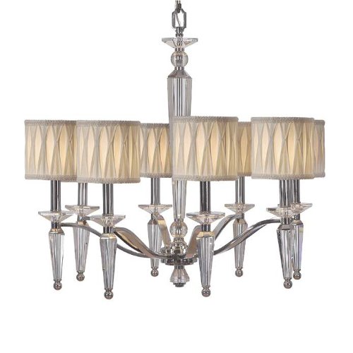 Finish:Chrome, Shade:Off-White Fabric Shade, Light Bulb:(8)60w B10 Cand F Incand Park Avenue eight-light chandelier with fabric shades and crystal accents. Includes 6 feet of chain and 10 feet of wire.