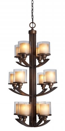 The casual feel of quality metalwork and a beautiful rust finish with double glass diffusers are all features of the "Sierra" Collection. 12 Light Foyer Chandelier