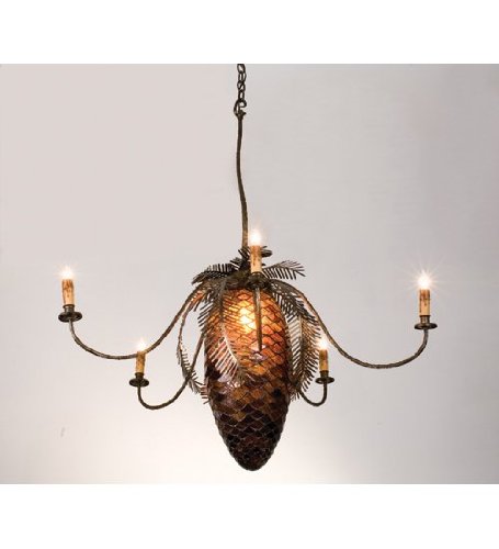 Meyda Tiffany 19829 Pinecone 6-Light Chandelier is hand crafted in the USA by Meyda artisans. Bring a little of the rustic outdoors into your personal sanctuary with the rich Rust finish complemented with the warmth of the glow from the Bark Brown granite stained art glass in a depiction of a Pine Cone and branches for a piece every lodge or cabin, or even an urban home deep in the city will appreciate for years to come. The 19829 is 31.5 inches high x 42 inches wide. The 19829 comes one per package, and requires one 60-watt medium base incandescent bulb and five 40-watt candelabra base incandescent bulbs (not included), dimmable using a standard incandescent dimmer. As in any hand crafted glass, patterning and the overall look may vary, and may not look exactly like the image shown when received, and may all differ slightly if ordering in multiples. Custom crafted in Yorkville, NY - please allow 30 days before shipping. The Meyda Tiffany Company is the nation's leading manufacturer and designer of Tiffany lamps and decorative lighting. Although founded in 1974, the firm's roots actually date back to the early 1900s, supplying Louis Comfort Tiffany and Tiffany Studios with lighting products, and creating the original Coca-Cola stained glass lamps and chandeliers.Meyda Lighting offers thousands of in-stock stained glass lighting and decor designs, with more than 50,000 customizable lighting options. Its vast line includes: Coca-Cola stained glass lighting group. Old Forge Collection of Rustic and Lodge styled lighting and decor. Craftsman Signature Series of outdoor and indoor lighting (including new landscape lanterns) featuring Arts and Crafts designs. Stained Glass lighting featuring Victorian, Nouveau and a broad range of styles. Art Glass windows and Fireplace Screens. Tiffany gifts and home accents. and The Metro and Metro Fusion Lines of contemporary art glass and fused glass designs.