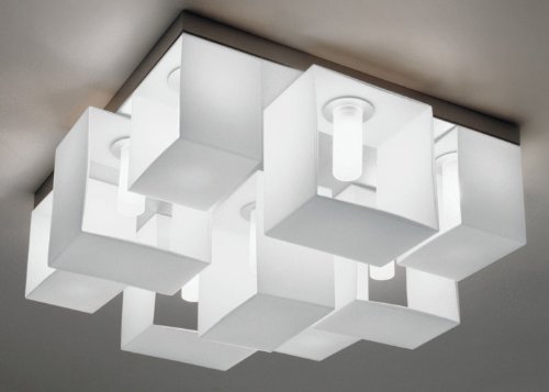 Glass:White/White, Finish:Metallic Gray, Light Bulb:(9)40w T4 G9 120v Halogen Logic and aesthetics give life to contemporary shapes and forms: light of the Domino flush mount illuminates the surroundings with presence and personality.Hand-blown glassDesigned and Manufactured in Italy