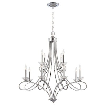 12Light CHAND,POLISH NICKEL-Hand polished richly plated nickel, Clear crystal accents.
