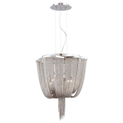 4 Light PENDANT, NICKEL-A cascading tapestry of delicate chain metal sets this majestic collection apart. with a handcrafted, polished nickel frame weaving elegantly from its base, this fixture is sure to be the focal point of any room.