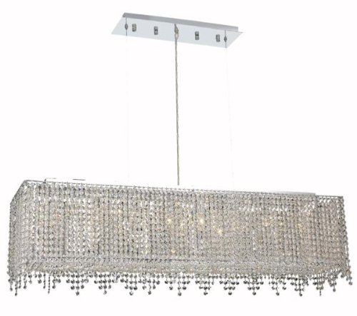 1391D46C-CL/RC Crystal Color / Crystal Trim: Crystal (Clear) / Royal Cut Features: -Pendant.-Available in Strass Swarovski, Spectra Swarovski, Elegant Cut and Royal Cut trims. Includes: -72'' Chain / wire included. Options: -Available in several crystal colors. Color/Finish: -Finish: Chrome. Specifications: -Accommodates: 8 x 55 - 440W Max 110V-125V (GU10) bulb. Dimensions: -Hanging weight: 45.-Dimensions: 13.5'' H x 9.5'' W x 46'' D. Collection: -Moda collection.