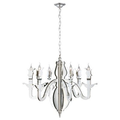 6 Light CHANDELIER, CHROME-Laser Cut Polished Chrome-Derived from the Italian word for metal, the Ferro collection is made of polished chrome metal. The laser cut silhouette of a chandelier is evident while the subtle chrome hardware call attention to the detailing.,Laser cut polished chrome Adjustable hanging length Uses 12 40-Watt candelabra base bulbs (not included) UL listed for safety,Bulb Base: Candelabra Bulb Type: Incandescent Chain Cord Length: 72 Collection: Ferro Country of Origin: CN.