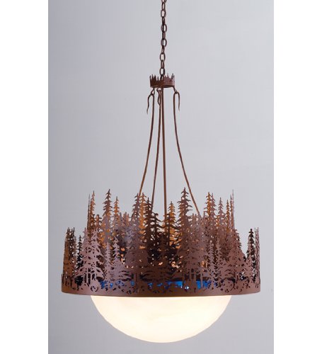 Meyda Tiffany 16212 Pine Lake 4-Light Pendant is hand crafted in the USA by Meyda artisans. A stand of Tall Pines beside a Blue lake circle a domes alabaster like shade. This handsome nature inspired fixture is hand finished in Rust. The 16212 is 36 Inch wide x 52 Inch high, with a maximum hanging height of 88 Inch. The 16212 comes one per package, and requires four 100-watt medium base incandescent bulbs (not included), dimmable using a standard incandescent dimmer. As in any hand crafted glass, patterning and the overall look may vary, and may not look exactly like the image shown when received, and may all differ slightly if ordering in multiples. Custom crafted in Yorkville, NY please allow 30 days before shipping. The Meyda Tiffany Company is the nation's leading manufacturer and designer of Tiffany lamps and decorative lighting. Although founded in 1974, the firm's roots actually date back to the early 1900s, supplying Louis Comfort Tiffany and Tiffany Studios with lighting products, and creating the original Coca-Cola stained glass lamps and chandeliers.Meyda Lighting offers thousands of in-stock stained glass lighting and decor designs, with more than 50,000 customizable lighting options. Its vast line includes: Coca-Cola stained glass lighting group; Old Forge Collection of Rustic and Lodge styled lighting and decor; Craftsman Signature Series of outdoor and indoor lighting (including new landscape lanterns) featuring Arts and Crafts designs; Stained Glass lighting featuring Victorian, Nouveau and a broad range of styles; Art Glass windows and Fireplace Screens; Tiffany gifts and home accents; and The Metro and Metro Fusion Lines of contemporary art glass and fused glass designs. In addition, Meyda Lighting offers extensive custom capabilities to create the custom lamp, fixture, window or accessory of your dreams.