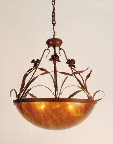The Detailed Description of Meyda Tiffany Custom Lighting 81638 Daffodil 3-Light Pendant, Rust Finish with Tea Stained Alabaster Glass BowlFeatures