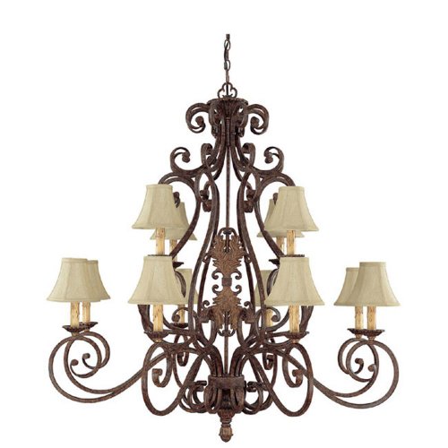 The Detailed Description of Capital Lighting 3672GU-430 Forest Lake Collection 12-Light Chandelier, Gilded Umber Finish with Fabric ShadesFeatures