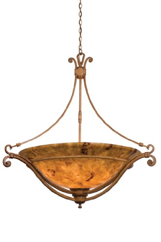 Kalco 4968BG/PS5209 Somerset 6-Light Pendant features a rich Bellagio finish with a natural Penshell shade in a traditional uplight bowl design sure to enhance many decor themes with class and style. 4968BG/PS5209 is 48IN wide by 46IN high, and is supplied with 4-Feet of chain and 8-Feet of wire. This fixture requires six 60-Watt medium base incandescent bulbs (not included), dimmable using a standard incandescent dimmer. 4968BG/PS5209 comes one per package. As in any hand-crafted materials, patterning and the overall look may vary, and may not look exactly like the image shown when received. From traditional to contemporary and every style in between, Kalco designs lighting fixtures that will complement any environment. Our design teams carefully design and cra-Feet each product, incorporating rich details. Unique materials and accents, such as crystal, stone, leather and shell, create the perfect finishing touch. Our Buddha Leaf, Iridescent Shell and Penshell shades are hand-laid by skilled Philippine artisans, while Calcite shades come directly from a mine in Utah. Any of these shades, coupled with our hand-wrought and hand-painted fixtures, creates a luminescent work of art, as individual as nature itself. Our products begin as premium iron stock, which is heated in a fire pit and shaped with a hammer and anvil. Skilled artisans, whose cra-Feet has been honed by years of training, perform Kalco hand-forged wrought iron work. Artisans in our Las Vegas, Nevada factory hand paint our designed products, using many layering techniques to create the rich finishes that have become our hallmark. Our lighting designs are completely hand-crafted, making every piece an original work of art. Hand-crafted, high quality iron work has always been synonymous with Kalco Lighting. Kalco exclusive natural shades bring amazing warmth and beauty to any room in your home. Fixtures are assembled in the USA, and the natural shade options are handmade in the Philippines.