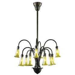 Finish:Bronze, Light Bulb:(12)25w B10 Cand F Incand Gold Lily Twelve-Light Chandelier