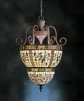 Make an unmistakable style statement with a chandelier from the Elegante Collection. Featuring the best of Art Nouveau design, this foyer pendant is sure to make an unforgettable first impression in your home's entryway. The historic beauty of Tiffany style glass will make your whole home glow. The forged steel frame is presented in a complementary Art Nouveau bronze finish. A stylish choice from Kichler.