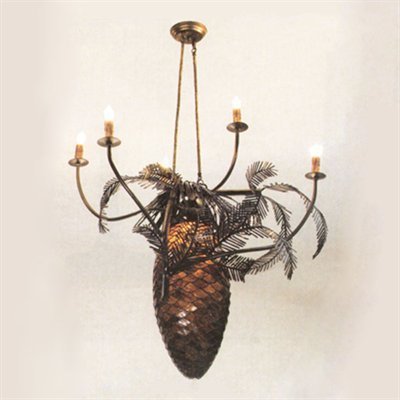 Meyda Tiffany 12363 Pinecone 6-Light Chandelier is hand crafted in the USA by Meyda artisans. Bring a little of the rustic outdoors into your personal sanctuary with the rich Antique Copper finish complemented with the warmth of the glow from the Bark Brown granite stained art glass in a depiction of a Pine Cone and branches for a piece every lodge or cabin, or even an urban home deep in the city will appreciate for years to come. The 12363 is 50 inches high x 29.5 inches wide. The 12363 comes one per package, and requires one 60-watt medium base incandescent bulb and five 40-watt candelabra base incandescent bulbs (not included), dimmable using a standard incandescent dimmer. As in any hand crafted glass, patterning and the overall look may vary, and may not look exactly like the image shown when received, and may all differ slightly if ordering in multiples. Custom crafted in Yorkville, NY - please allow 30 days before shipping. The Meyda Tiffany Company is the nation's leading manufacturer and designer of Tiffany lamps and decorative lighting. Although founded in 1974, the firm's roots actually date back to the early 1900s, supplying Louis Comfort Tiffany and Tiffany Studios with lighting products, and creating the original Coca-Cola stained glass lamps and chandeliers.Meyda Lighting offers thousands of in-stock stained glass lighting and decor designs, with more than 50,000 customizable lighting options. Its vast line includes: Coca-Cola stained glass lighting group. Old Forge Collection of Rustic and Lodge styled lighting and decor. Craftsman Signature Series of outdoor and indoor lighting (including new landscape lanterns) featuring Arts and Crafts designs. Stained Glass lighting featuring Victorian, Nouveau and a broad range of styles. Art Glass windows and Fireplace Screens. Tiffany gifts and home accents. and The Metro and Metro Fusion Lines of contemporary art glass and fused glass designs.