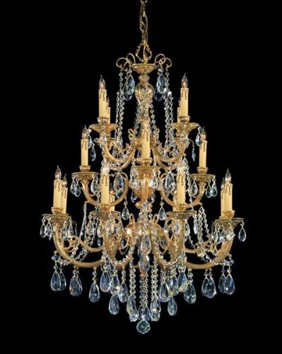 Finish:Olde Brass, Crystal:Swarovski Spectra, Light Bulb:(16)60w B10 Cand C Incand This chandelier takes an ornate cast brass frame and adorns it with sparkling crystal accents to really make it stand out in any room.