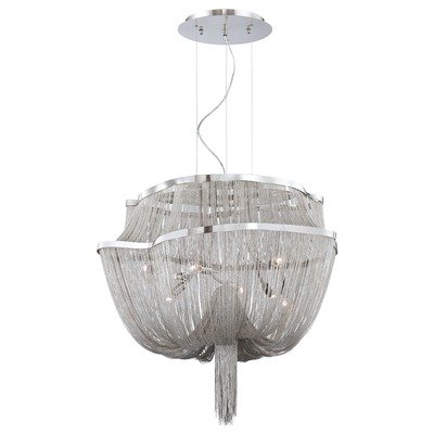 8 Light PENDANT, NICKEL-A cascading tapestry of delicate chain metal sets this majestic collection apart. with a handcrafted, polished nickel frame weaving elegantly from its base, this fixture is sure to be the focal point of any room.