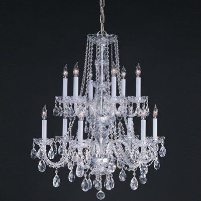 1137-PB-CL-S Crystal Type/Finish: Swarovski Strass/Polished Brass Features: -Chandelier.-Available in polished brass or chrome.-Available in Italian, Majestic Wood Polished, Swarovski Spectra and Swarovski Strass crystal.-Majestic Wood Polished: Hand cut on an iron then on a sandstone wheel; each piece is authentic and contains lead to make the crystal more reflective.-Swarovski Spectra: Precision cutting and superior light reflection; quality at an affordable price.-Swarovski Strass: Finest crystal in the world; laser cut for razor sharp cutting of facets; treated with invisible coating and contains lead to make the crystal more reflective. Includes: -Includes 3 feet of chain and 6 feet of wire. Specifications: -Accommodates (12) 40 watt candelabra base incandescent bulbs (not included). Dimensions: -Overall dimensions: 32'' H x 26'' Dia. Collection: -Bohemian Crystal Collection.