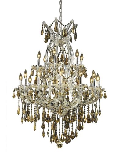 The Detailed Description of Elegant Lighting 2801D32C-GT/RC Maria Theresa 42-Inch High 19-Light Chandelier, Chrome Finish with Golden Teak (Smoky) Royal Cut RC CrystalFeatures
