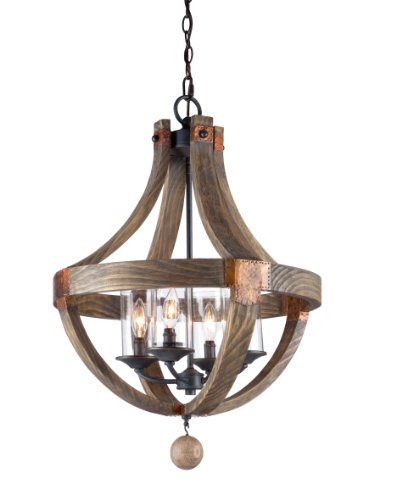 The Artcraft Lighting JA484 Hockley Four-Light Chandelier has the following dimensions: 19.75-Inch long, 19.75-Inch wide, 28.75-Inch high. The Jo Alcorn Hockley collection features authentic pine as its beautiful frame. Actual copper metal plates decorate this gem. The Hockley series is complimented with a clear cylinder type glass. Truly stunning. Perfect for the kitchen, dining room, foyer and more! Requires 4 60-Watt bulbs with a candelabra bulb base. Artcraft Lighting is dedicated to designing the most fashionable and functional lighting butthe production must be executed as flawlessly as possible becausequality is timeless.
