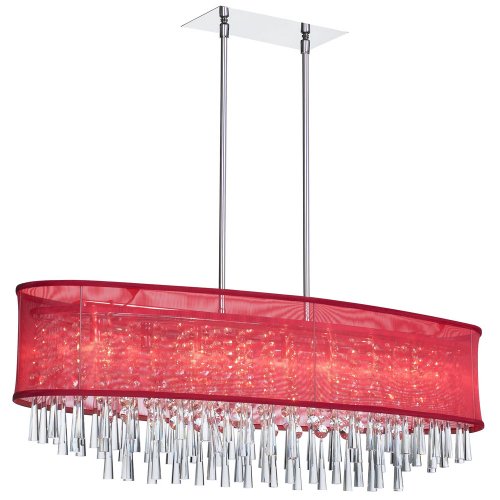 Finish:Polished Chrome, Shade:Red Organza, Light Bulb:(8)40w T4 G9 120v Halogen Josephine Series 8-Light Oval Crystal Pendant With Micro Shade