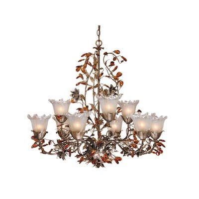 The Detailed Description of Vaxcel USA OLCHU009AA Ophelia 9 Light Floral Chandelier Lighting Fixture in Bronze, GlassFeatures