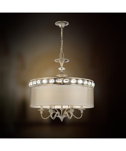 Light Bulb:(9)60w B10 Cand F Incand Bijoux 9-Light Pendant Simple but elegant collection inspired by the regal influences of Europe. Double drum shade of fabric and fine material diffusing the light to a soft glow all complimented by a crown of hand cut crystal. Antique gold plated frame Sheer outer drum shade with soft white inner shade