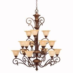 As our interior spaces continue to grow taller, the need to fill these areas does as well. Knowing this, Kichler has created this beautiful and large 3-tiered, 15-light Grande Chandelier as part of the Cheswick Collection. The Cheswick Collection is a large family whose classic design elements include a nicely sized and beautifully contoured square tube with double scroll arms and trim for a regal profile. The clean and antique beauty of Parisian Bronze finish that is partnered with the warm light provided by Honey etched glass, makes this value-priced grande chandelier a high-end bargain. It uses 75-watt (max.) bulbs, measures 48' in diameter with a 56' body height, and comes complete with 71' of extra lead wire and 6' of chain.