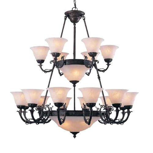 Finish:Artisan Bronze, Diffuser:Alabaster, Light Bulb:(24)60w A19 Med F Incand Andorra 12+4+6+2-light chandelier. Includes 6 feet of chain and 10 feet of wire.