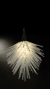 Glass:Clear Icicle, Light Bulb:(6)40w T4 G9 120v Halogen Cassini Pendant. Polished Chrome finish