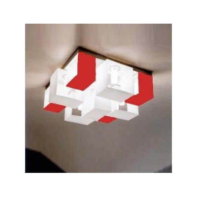Glass:White/Red, Finish:Metallic Gray, Light Bulb:(9)40w T4 G9 120v Halogen Logic and aesthetics give life to contemporary shapes and forms: light of the Domino flush mount illuminates the surroundings with presence and personality.Hand-blown glassDesigned and Manufactured in Italy