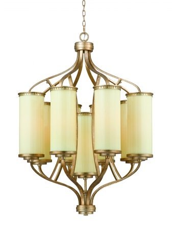 Glass:Cream, Light Bulb:(9)100w A19 Med F Incand Italian in style and decadent in the details, this stunning collection is masterfully designed. The Il Maestro 9-light chandelier in a hand painted gold and silver leaf finish frames the cream glass palette.