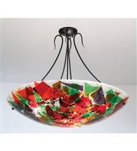 Meyda Tiffany 26346 Colorito 3-Light Semi-Flush is hand crafted in the USA by Meyda artisans. Say Molto Bello to the Duomo Colorito fixture, a hot dish scattered with a rainbow of colored glass. The shade is fused and formed in a hot kiln and suspended from hardware finished in Black powder coat for a fun contemporary fixture sure to be appreciated for many years to come. The 26346 is 25-Inch high x 30-Inch wide. The 26346 comes one per package, and requires three 100-Watt medium base incandescent bulbs (not included), dimmable using a standard incandescent dimmer. As in any hand crafted glass, patterning and the overall look may vary, and may not look exactly like the image shown when received, and may all differ slightly if ordering in multiples. Custom crafted in Yorkville, NY - please allow 30 days before shipping. The Meyda Tiffany Company is the nation's leading manufacturer and designer of Tiffany lamps and decorative lighting. Although founded in 1974, the firm's roots actually date back to the early 1900s, supplying Louis Comfort Tiffany and Tiffany Studios with lighting products, and creating the original Coca-Cola stained glass lamps and chandeliers.Meyda Lighting offers thousands of in-stock stained glass lighting and decor designs, with more than 50,000 customizable lighting options. Its vast line includes: Coca-Cola stained glass lighting group; Old Forge Collection of Rustic and Lodge styled lighting and decor; Craftsman Signature Series of outdoor and indoor lighting (including new landscape lanterns) featuring Arts and Crafts designs; Stained Glass lighting featuring Victorian, Nouveau and a broad range of styles; Art Glass windows and Fireplace Screens; Tiffany gifts and home accents; and The Metro and Metro Fusion Lines of contemporary art glass and fused glass designs.