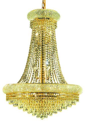 The Detailed Description of Elegant Lighting 1802D28G/RC Primo 36-Inch High 14-Light Chandelier, Gold Finish with Crystal (Clear) Royal Cut RC CrystalFeatures