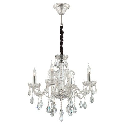 4 Light CHAND, CLEAR-Entirely handmade blown glass, Richly polished crystals, Silk fabric cord cover and hand plated framework.