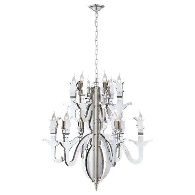 12Light CHANDELIER, CHROME-Laser Cut Polished Chrome-Derived from the Italian word for metal, the Ferro collection is made of polished chrome metal. The laser cut silhouette of a chandelier is evident while the subtle chrome hardware call attention to the detailing.,Laser cut polished chrome Adjustable hanging length Uses 12 40-Watt candelabra base bulbs (not included) UL listed for safety,Bulb Base: Candelabra Bulb Type: Incandescent Chain Cord Length: 72 Collection: Ferro Country of Origin: CN Diameter: 37 Finish: Chrome Height: 35-3 4 Kit: No Number of Lights: 12 Shade Finish: Nickel Type: Non Crystal Chandeliers Voltage: 120-Wattage: 40.