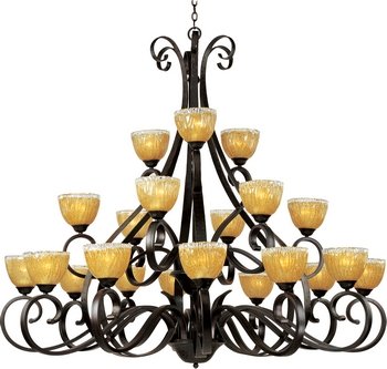 Finish:Oil Rubbed Bronze, Glass:Amber Ice, Light Bulb:(21)60w A19 Med F Incand This 21 light, 3-tier chandelier is finished in Oil Rubbed Bronze and features Amber Ice Glass. From the Barcelona Collection. .