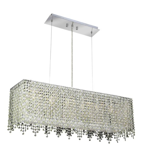 1391D38C-LP/RC Size / Crystal Color / Crystal Trim: 38" / Lt. Peridot (Light Green) / Royal Cut Features: -Pendant.-Available in Strass Swarovski, Spectra Swarovski, Elegant Cut and Royal Cut trims. Includes: -72'' Chain / wire included. Options: -Available in 32'' and 38'' sizes.-Available in several crystal colors. Color/Finish: -Finish: Chrome. Specifications: -Accommodates: 6 x 55 - 330W Max 110V-125V (GU10) bulb. Dimensions: -32'' Hanging weight: 30.-38'' Hanging weight: 35.-32'' Dimensions: 13.5'' H x 9.5'' W x 32'' D.-38'' Dimensions: 13.5'' H x 9.5'' W x 38'' D. Collection: -Moda collection.