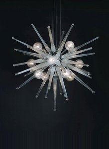 Light Bulb:(12)20w T3 G4 12v Halogen Orion Pendant. Polished chrome finish Clear icicle glass and spun filament glass shades 12v Electronic transformer