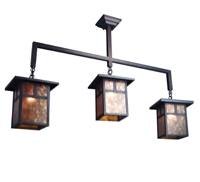 Meyda Tiffany 20683 Hyde Park Collection 3LT Island Pendant is handcrafted in the USA by Meyda artisans. A Mission T pattern adorns this handsome American Craftsman lantern style three light island fixture. This has a Craftsman Brown finish complemented by Amber Mica panels. The 20683 is 47-Inch wide x 30-Inch high x 9-Inch deep. The 20683 comes one per package, and requires three 60W medium base incandescent bulbs (not included), dimmable using a standard incandescent dimmer. As in any hand crafted glass, patterning and the overall look may vary, and may not look exactly like the image shown when received, and may all differ slightly if ordering in multiples. Custom crafted in Yorkville, New York. Please allow 50 days for shipping. The Meyda Tiffany Company is the nation's leading manufacturer and designer of Tiffany lamps and decorative lighting. Although founded in 1974, the firm's roots actually date back to the early 1900s, supplying Louis Comfort Tiffany and Tiffany Studios with lighting products, and creating the original Coca-Cola stained glass lamps and chandeliers.Meyda Lighting offers thousands of in-stock stained glass lighting and decor designs, with more than 50,000 customizable lighting options. Its vast line includes: Coca-Cola stained glass lighting group; Old Forge Collection of Rustic and Lodge styled lighting and decor.