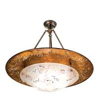 Meyda Tiffany 17521 Supernova Fused Glass 3-Light Pendant is hand crafted in the USA by Meyda artisans. An explosion of satellites, stars, and planets light up the Supernova inverted pendant fixture. The shade, spiked with swirls and squiggles, is fused and formed in a hot kiln and suspended from a ring pierced with matching patterns. The hardware is finished in a Copper powder coat, and designed as a fun contemporary fixture to be appreciated for many years to come. The 17521 is 28-inch high by 31-inch wide. The 17521 comes one per package, and requires three 100-watt medium base incandescent bulbs (not included), dimmable using a standard incandescent dimmer. As in any hand crafted glass, patterning and the overall look may vary, and may not look exactly like the image shown when received, and may all differ slightly if ordering in multiples. Custom crafted in Yorkville, NY please allow 50 days before shipping. The Meyda Tiffany Company is the nation's leading manufacturer and designer of Tiffany lamps and decorative lighting. Although founded in 1974, the firm's roots actually date back to the early 1900s, supplying Louis Comfort Tiffany and Tiffany Studios with lighting products, and creating the original Coca-Cola stained glass lamps and chandeliers.Meyda Lighting offers thousands of in-stock stained glass lighting and decor designs, with more than 50,000 customizable lighting options. Its vast line includes: Coca-Cola stained glass lighting group; Old Forge Collection of Rustic and Lodge styled lighting and decor; Craftsman Signature Series of outdoor and indoor lighting (including new landscape lanterns) featuring Arts & Crafts designs; Stained Glass lighting featuring Victorian, Nouveau and a broad range of styles; Art Glass windows and Fireplace Screens; Tiffany gifts and home accents; and The Metro and Metro Fusion Lines of contemporary art glass and fused glass designs.