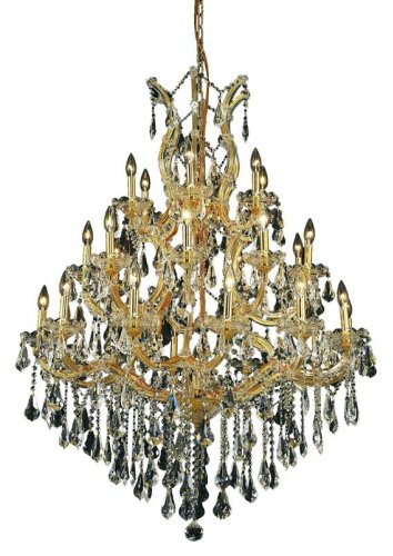The Detailed Description of Elegant Lighting 2801D38G/RC Maria Theresa 52-Inch High 28-Light Chandelier, Gold Finish with Crystal (Clear) Royal Cut RC CrystalFeatures