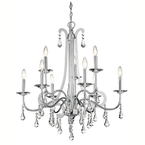 Kichler 42546CH Chandelier 9Lt Chrome Fixture Height: 35 Fixture Width: 34 Bulb 1 Number: 9 Bulb 1 Type: B10 Bulb 1 Wattage: 60 Socket: Candelabra Chrome Leanora Chain Length: 72