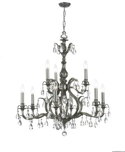 Finish:Pewter, Crystal:All Clear Majestic Wood Polished, Light Bulb:(9)60w B10 Cand C Incand Dawson 9-Light Chandelier