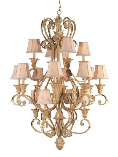 Finish:Dark Rust, Light Bulb:(16)60w B10 Cand C Incand Winslow 16-Light Chandelier Handpainted wrought iron chandelier Comes with ivory shades