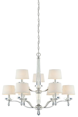 Light Bulb:(9)60w B10 Cand F Incand Elora 9-Light Chandelier Transitional collection featuring the combination of polished chrome, metal works with crystal clear accents and bobeches all complimenting the solid crystal column. Chrome finish Off-white silk shade