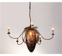 Meyda Tiffany 98970 Pinecone 6-Light Chandelier Is Hand Crafted In The USA By Meyda Artisans. A Large Lighted Pinecone Constructed Of Hand-Cut Bark Brown Granite Glass Is Adorned With Pine Bough Covered Arms That Terminate In Elegant Simulated Was Candles. This Handsome Five Arm Chandelier Has A Warm Antique Copper Finish and A Rustic Lodge Appeal. The 98970 Is 36IN Wide by 49IN High, With A Maximum Hanging Height Of 80IN. The 989703 Comes One Per Package and Requires Five 40W Candelabra Base Bulbs and One 60W Medium Base Bulb (All Not Included), Dimmable Using A Standard Incandescent Dimmer. As In Any Hand Crafted Glass, Patterning and The Overall Look May Vary and May Not Look Exactly Like The Image Shown When Received and May All Differ Slightly If Ordering In Multiples. Custom Crafted In Yorkville. Please Allow 30 Days Before Shipping. The Meyda Tiffany Company Is The Nation Leading Manufacturer and Designer Of Tiffany Lamps and Decorative Lighting. Although Founded In 1974, The Firm Roots Actually Date Back To The Early 1900s, Supplying Louis Comfort Tiffany and Tiffany Studios With Lighting Products and Creating The Original Coca-Cola Stained Glass Lamps and Chandeliers. Meyda Lighting Offers Thousands Of In-Stock Stained Glass Lighting and Decor Designs, With More Than 50,000 Customizable Lighting Options. Its Vast Line Includes: Coca-Cola Stained Glass Lighting Group; Old Forge Collection Of Rustic and Lodge Styled Lighting and Decor; Craftsman Signature Series Of Outdoor and Indoor Lighting (Including New Landscape Lanterns) Featuring Arts & Crafts Designs; Stained Glass Lighting Featuring Victorian, Nouveau and A Broad Range Of Styles; Art Glass Windows and Fireplace Screens; Tiffany Gifts and Home Accents; and The Metro and Metro Fusion Lines Of Contemporary Art Glass and Fused Glass Designs. In Addition, Meyda Lighting Offers Extensive Custom Capabilities To Create The Custom Lamp, Fixture, Window Or Accessory Of Your Dreams.