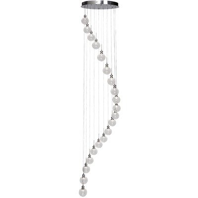 The Artcraft Lighting AC880 Yale Twenty-Light Chandelier has the following dimensions: 21.25-Inch long, 21.25-Inch wide, 132-Inch high. The Yale Collection of chandeliers, pendants and wall brackets, features glass encased bulbing. The glass is encased with metal wiring to give a unique look to this stylist design. These units are low voltage. Very Sleek. 20 Light. Perfect for the foyer and more! Requires 20 20-Watt bulbs with a bi pin bulb base. Artcraft Lighting is dedicated to designing the most fashionable and functional lighting butthe production must be executed as flawlessly as possible becausequality is timeless.