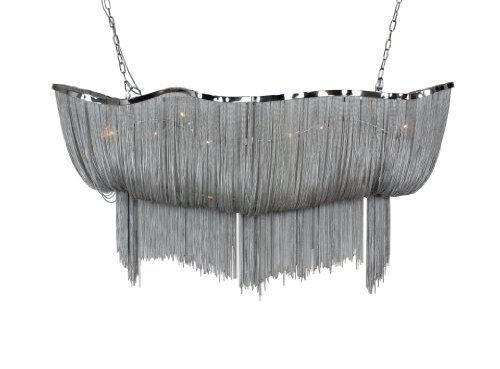 The Mega Chandelier is made for hundreds of strands of metal draped together to give an elegant shimmer to the lightt that it emits. Chrome accents abound.