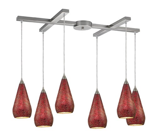 The Detailed Description of Elk 546-6RBY-CRC 6-Light Pendant In Satin Nickel With Ruby CrackleFeatures