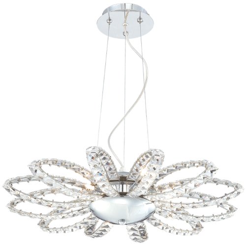 Light Bulb:(6)20w T3 G4 12v Halogen Farella 6-Light Pendant/Flush Mount Ultra modern Daisy of crystal facets embedded into a polished chrome seamless frame. Can be converted to flush mount fixture. Chrome finish Crystal shade